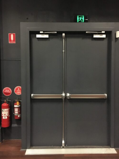 - Front Door: The front door should remain closed and only be opened by the Lead Hirer using the door code or letting in your students, team or collaborators. Do not let anyone else in. The front door is automatic. Enter your code and the door will open automatically. To exit the building, press the Green Button on the left wall as you exit. No need to push/pull the door handle.